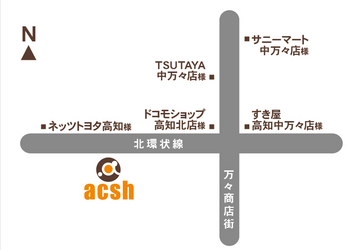 - ドコモショップ高知北店の交差点を西、みかづき文化会館前 【店舗地図】