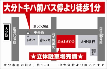 - 大分駅前通り・大分銀行赤レンガ支店隣り(トキハデパート並び)