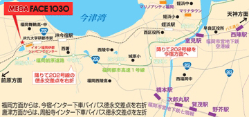 - 旧202号線沿(前原方面からは今宿方面に真っすぐ)/新202号線天神方面からは今宿方面へ(徳永交差点が目印)/今宿インター下車後は、徳永交差点右折/周船寺インター下り