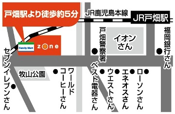 - JR戸畑駅から枝光方面へ歩いて5分牧山交差点そば