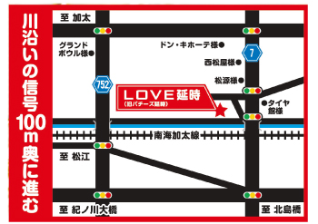 - 松源延時店様近くの川沿いの信号を奥に100m進む