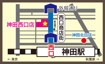 - JR神田駅西口 徒歩3分 西口商店街中程の左側