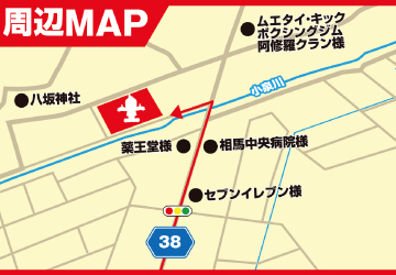 - 国道38号線(ほこだて仏光堂交差点)から相馬中央病院様通過、約100m左側