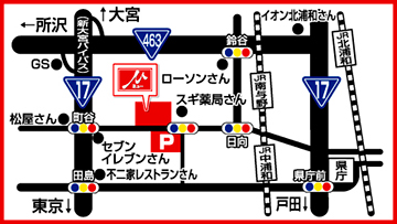 - 国道17号と17号バイパスを結ぶ新六間道路沿い。 【店舗地図】