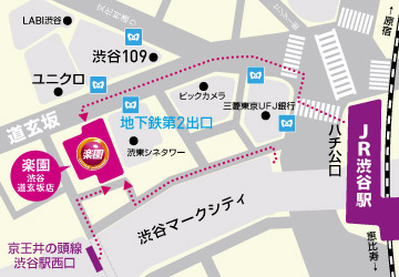 - JR渋谷ハチ公口から徒歩4分!京王井の頭線西口改札出てすぐ!