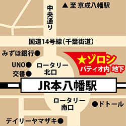 - JR総武線本八幡駅北口出て右側0分PATIOビルB1F