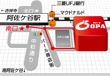- JR中央線 阿佐ヶ谷駅南口から徒歩1分 地下鉄南阿佐ヶ谷駅から徒歩5分