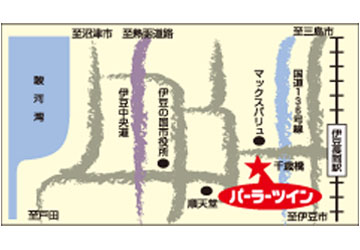 - 伊豆長岡駅から5分、狩野川渡ってすぐ。