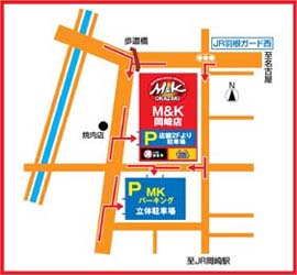 - JR岡崎駅西側出入口から北へ徒歩で約5分