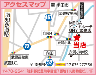 - 名鉄知多武豊駅から徒歩5分、MEGAドン・キホーテUNY武豊店すぐ隣