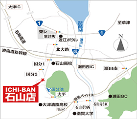 - 1号線「粟津」交差点を山手に曲がり、道なりに直進約5キロ!京阪バス「仏神寺」より徒歩3分!