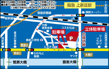 - 【車】大阪内環状線・「大桐」交差点すぐ。【電車】阪急京都線「上新庄」駅から徒歩10分 【店舗地図】