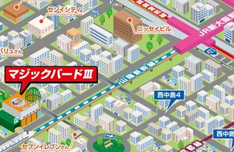 - 地下鉄新大阪駅『4番出口』⇒新幹線沿いに西へDASHで10分(緑の鳥かごが目印)又は阪急三国駅から南へ10分【店舗地図】