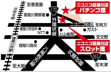 - 170号線(外環状線)沿☆京阪寝屋川市駅の寝屋川警察側出口から歩いて15分→寝屋川警察署前