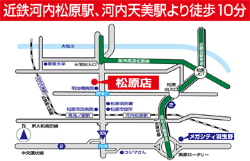 - 阪神高速三宅ランプを南へ800m 国道309号線沿い