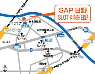 SAP日野で開催される主要イベント:新台入替(P-WORLD引用)(過去1年で18回開催)、旧イベ(7のつく日)(過去1年で16回開催)、SAP取材(過去1年で6回開催)、G百姫ガール来店(過去1年で4回開催)、マグロ取材(過去1年で4回開催)。今後のイベント予定:旧イベ(7のつく日)(2026-01-17)、でちゃう!取材_(禅)(2026-01-17)、ととのっち来店(2026-01-18)。SAP日野のイベント傾向・取材実績をスロマップAIでチェック。