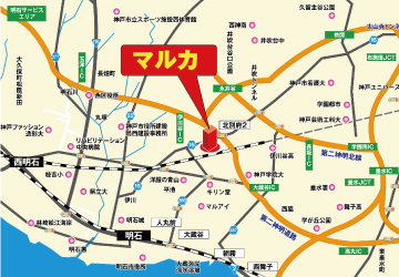 - 地下鉄伊川谷駅より南へ車で10分 バス66系統または68系統「南別府一丁目」 JR明石駅から北へ車で10分 バスで66系統または68系統「南別府1丁目」【店舗地図】