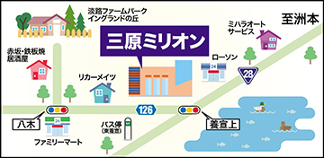 - 洲本ICを西へ車10分、国道28号沿い(養宜上交差点北側すぐ)